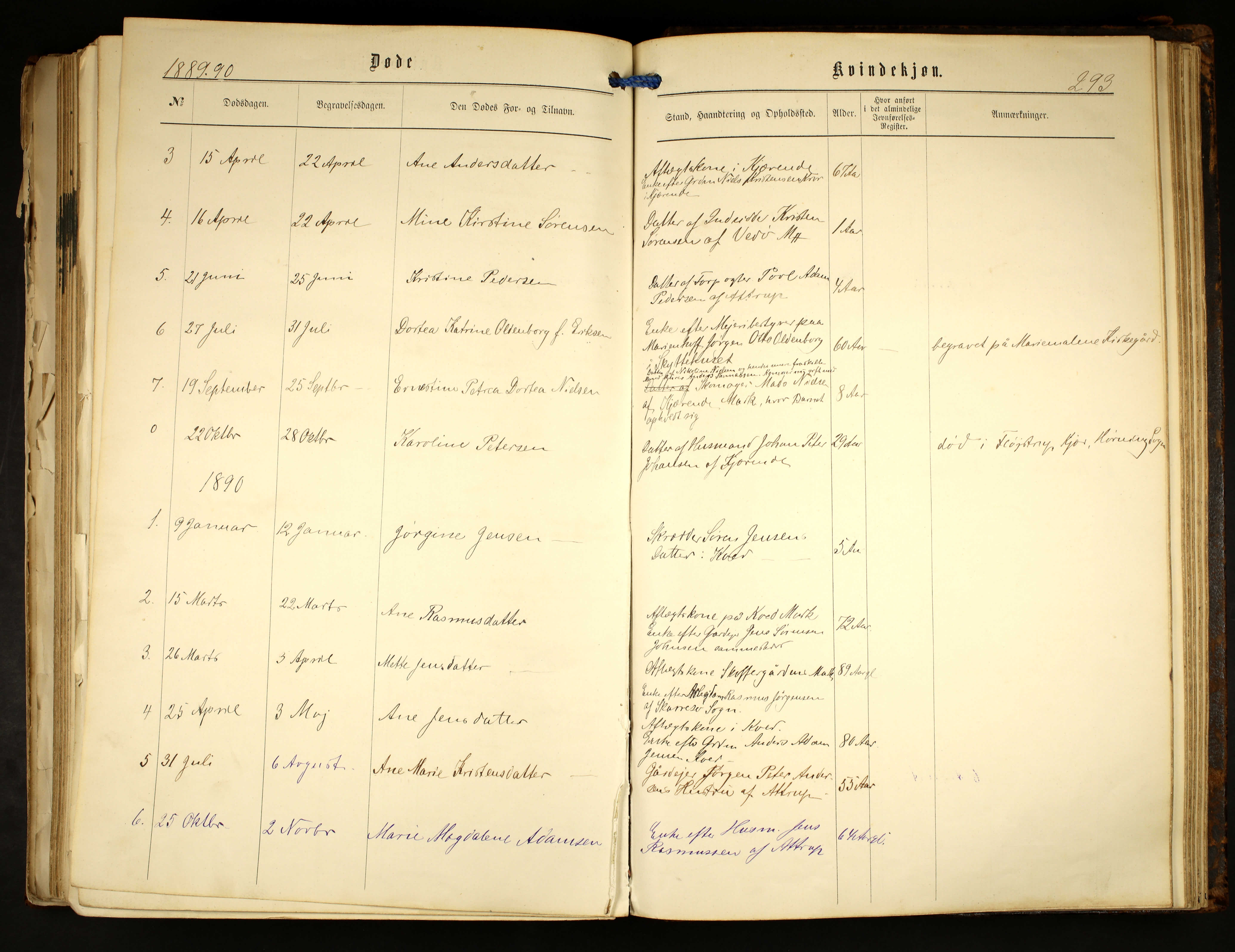 Dorthea Catrine Erichsen død 1889