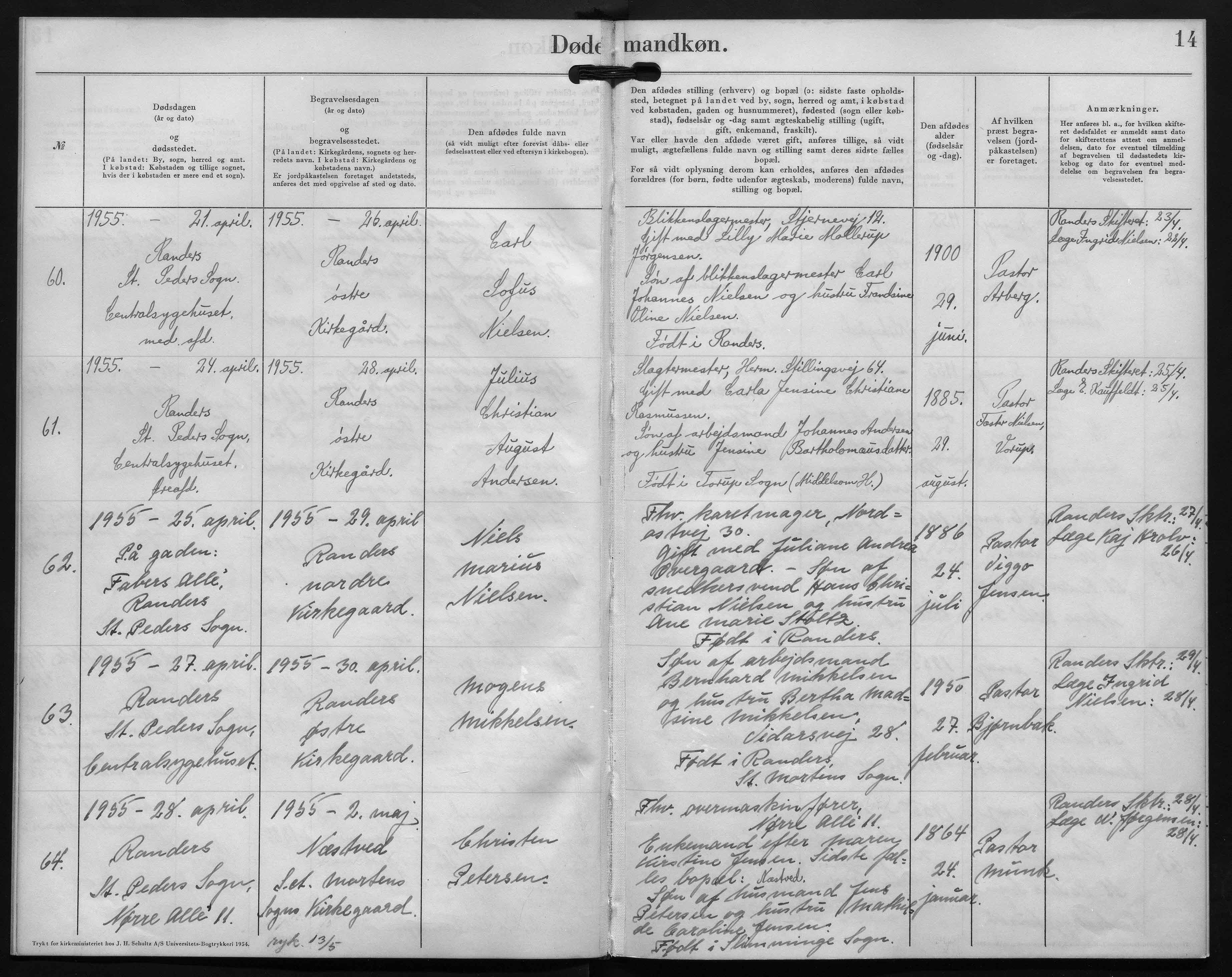 Julius Christian August Andersen død 1955