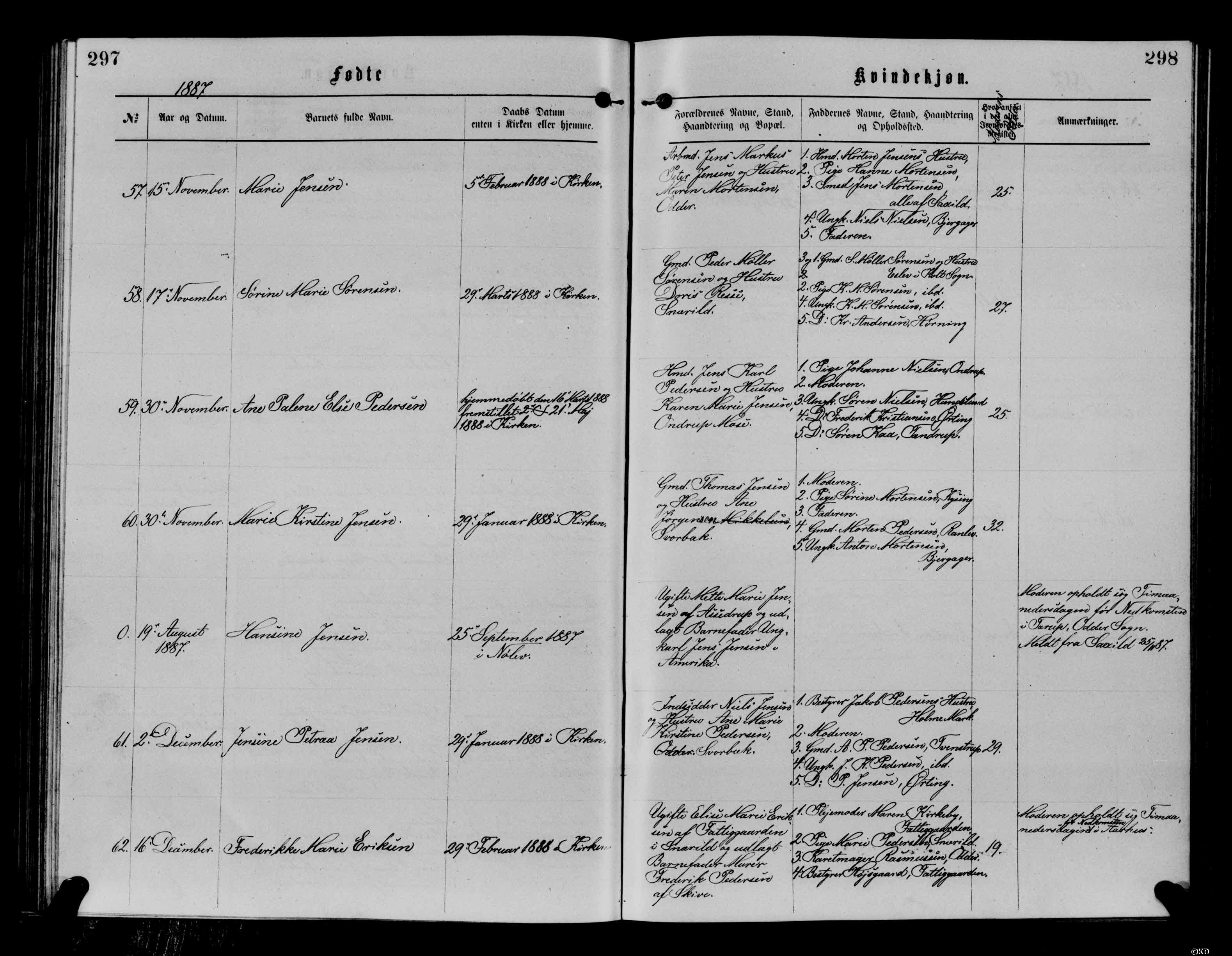 KB 1885 1891 Odder Hads Århus opslag 100 nr 58 Sørine født